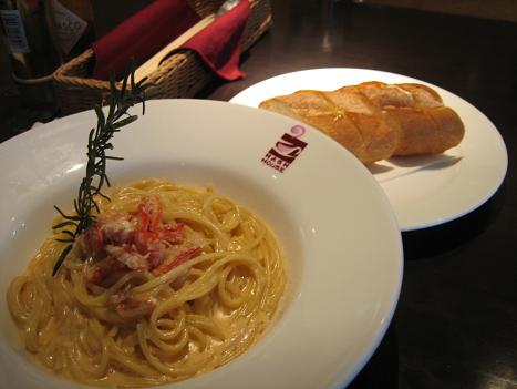 カニクリームパスタ! 森家産 無農薬ローズマリー立ってます (ささってます!)