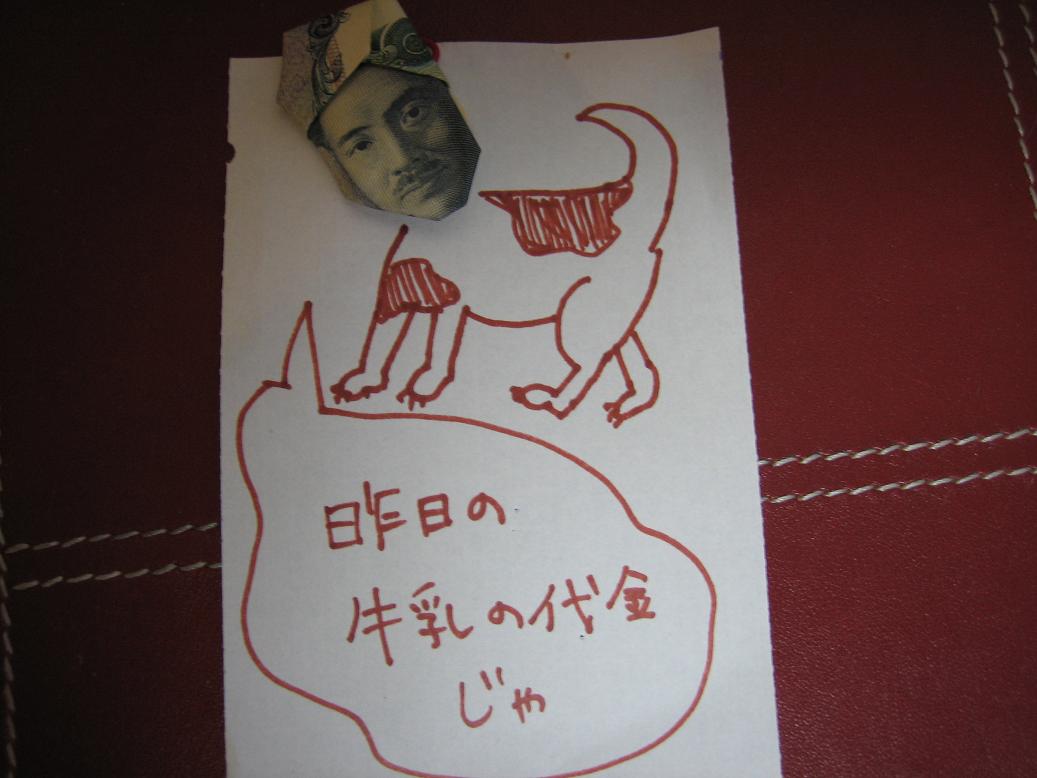 昨日 買い物に行ってもらった夫に千円返した写真です。