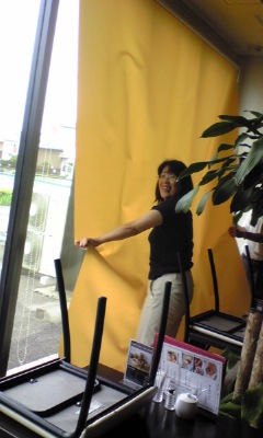 窓のすきまから入ってロールカーテンにつくのでこうして定休日には