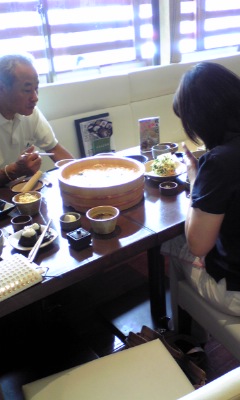 今日のお昼は姉妹店ふくやではじめての「多人たらいうどん」